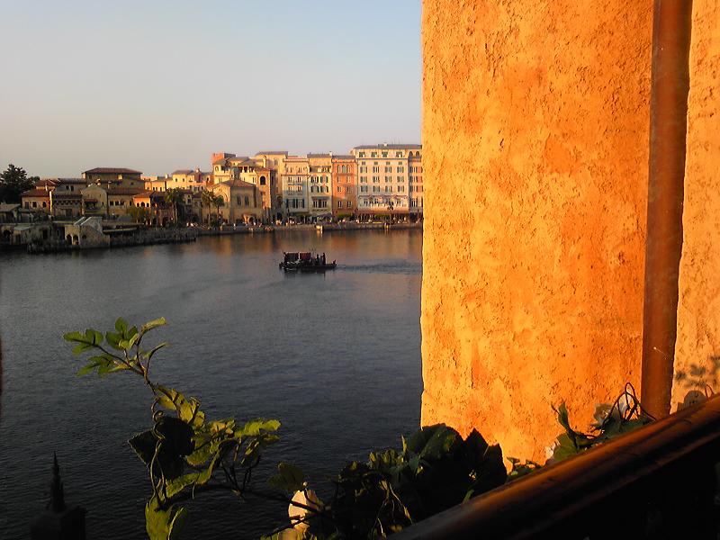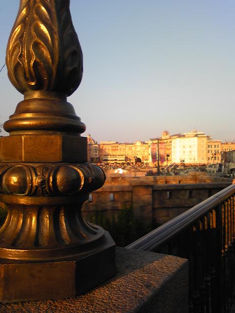西日が射して、街並みも水面も金色です。