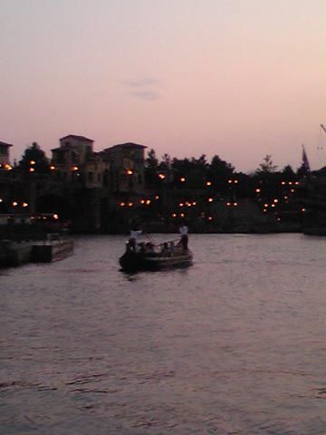 黄昏にゴンドラが漕ぎ出していきます。