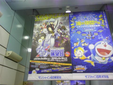 エスカレーターの頭上にこんなんが!どらいもんとボクらのぎんたまが肩並べてるよ!