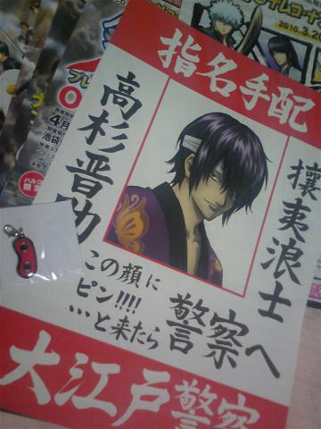 大江戸捕物帳参加賞で、沖田のアイマスクキーチャームと土方のマヨラー認定券がもらえました。よし、今度行くときは土方スペシャルを頼んでこの券を出そう。