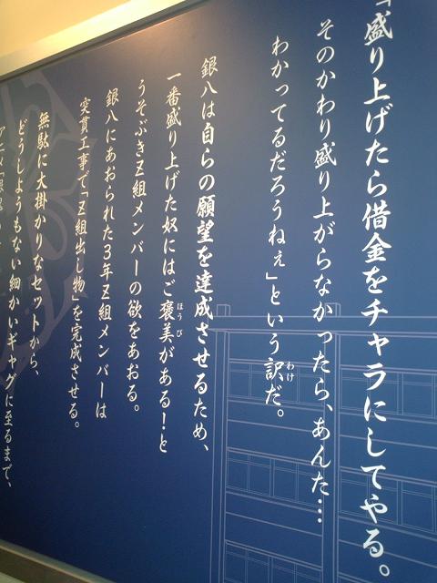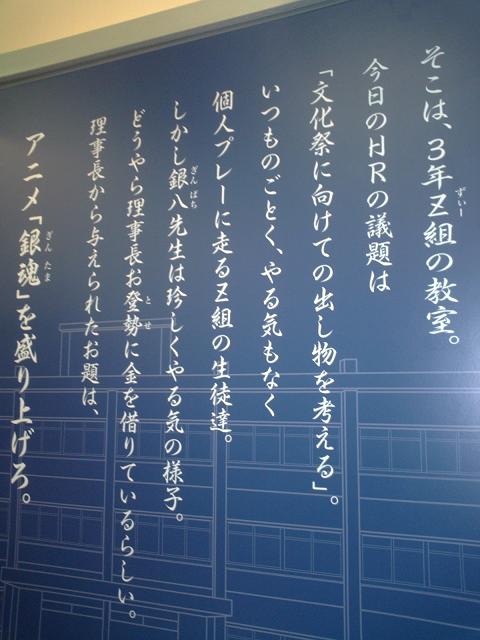 ちなみに入場してすぐのスペースは黒板があって机が並べられてて、コンセプトの説明が貼りだされてて、銀八先生の「~これまでのあらすじ~」的なだべりが聞けます。