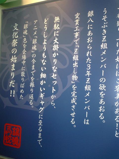 胸を熱くさせたところで、改めまして、池袋の銀魂高校文化祭です。