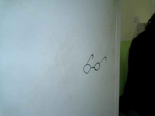 掃除用具入れぽいロッカーに眼鏡の落書き?と思って開けてみると。